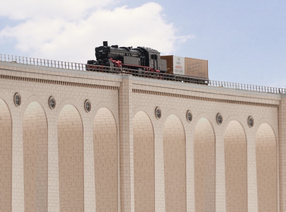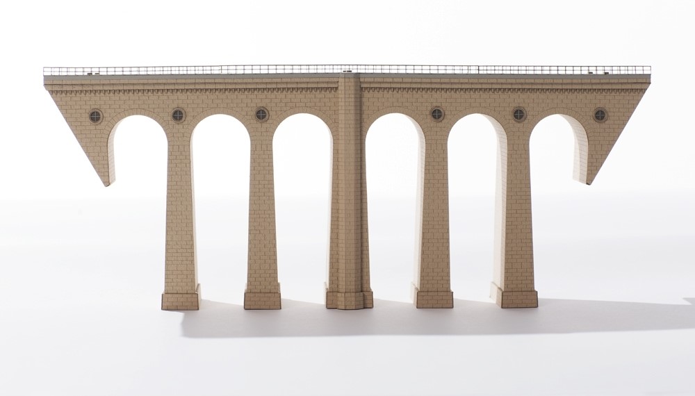 Der Viadukt kann sowohl ein- als auch zweispurig gebaut werden und ist außerdem in der Länge unbegrenzt erweiterbar. Mit dem Erweiterungs-Set(Art. 129171) können Sie Ihren Viadukt um zwei Bögen ohne sichtbare Nahtstellen erweitern. Der Bausatz Viadukt Altenbeken wird in jeder Bauform das Highlight Ihrer Anlage.