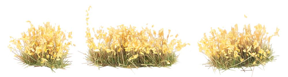 Kleine, unregelmäßige Blütenbüschel in Gelb zum Aufkleben – perfekt, um Wege, Gärten, Parks oder Wiesen zu beleben und der Modelllandschaft eine natürliche, detailreiche Note zu verleihen.