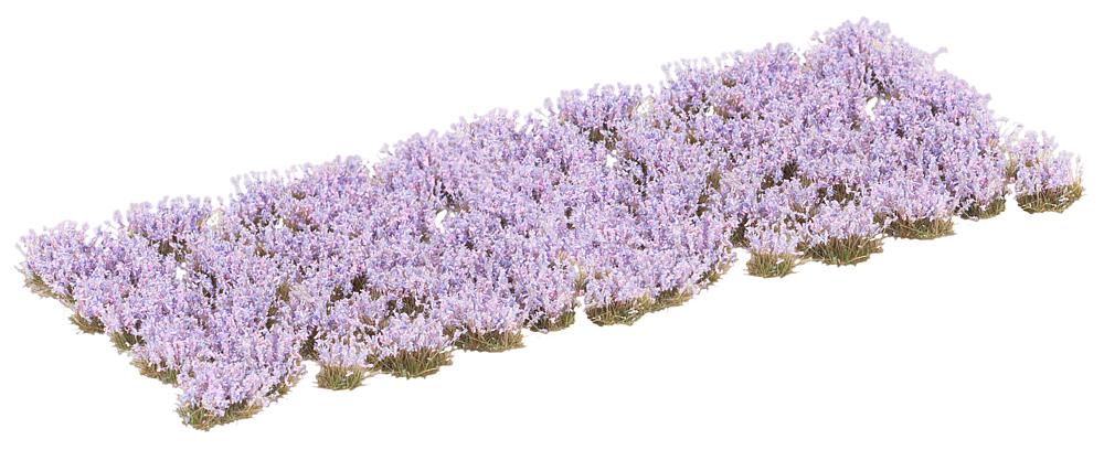 Kleine, unregelmäßige Blütenbüschel in Lila zum Aufkleben – perfekt, um Wege, Gärten, Parks oder Wiesen zu beleben und der Modelllandschaft eine natürliche, detailreiche Note zu verleihen.