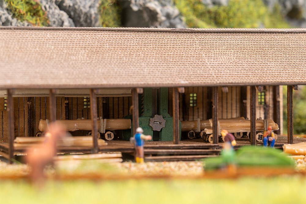 Rustikal und aus Holz gefertigt, vermittelt das Modell eines Sägewerks mit Wassermühle die typische Atmosphäre eines alten Handwerksbetriebs. Zahlreiche detailreiche Gerätschaften und Werkzeuge sorgen für authentischen Charme, während das Modell als liebevolles Detail ein Stück landschaftliches Idyll auf jede Miniaturanlage bringt.