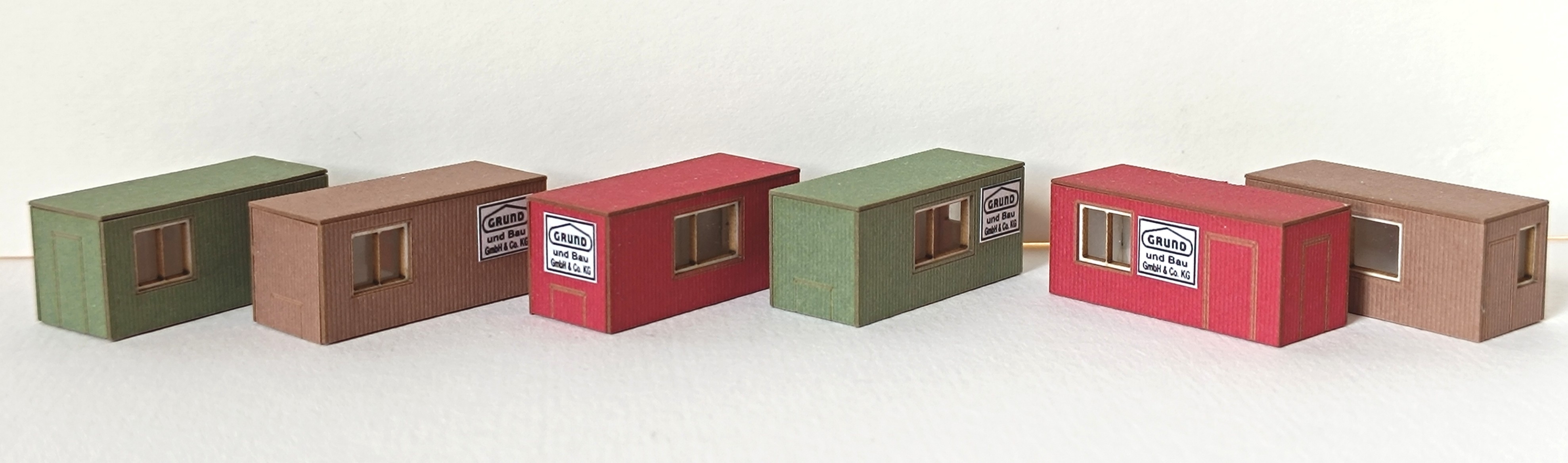 - je 2 Container in den Farben braun, resedagrün und dunkelrot