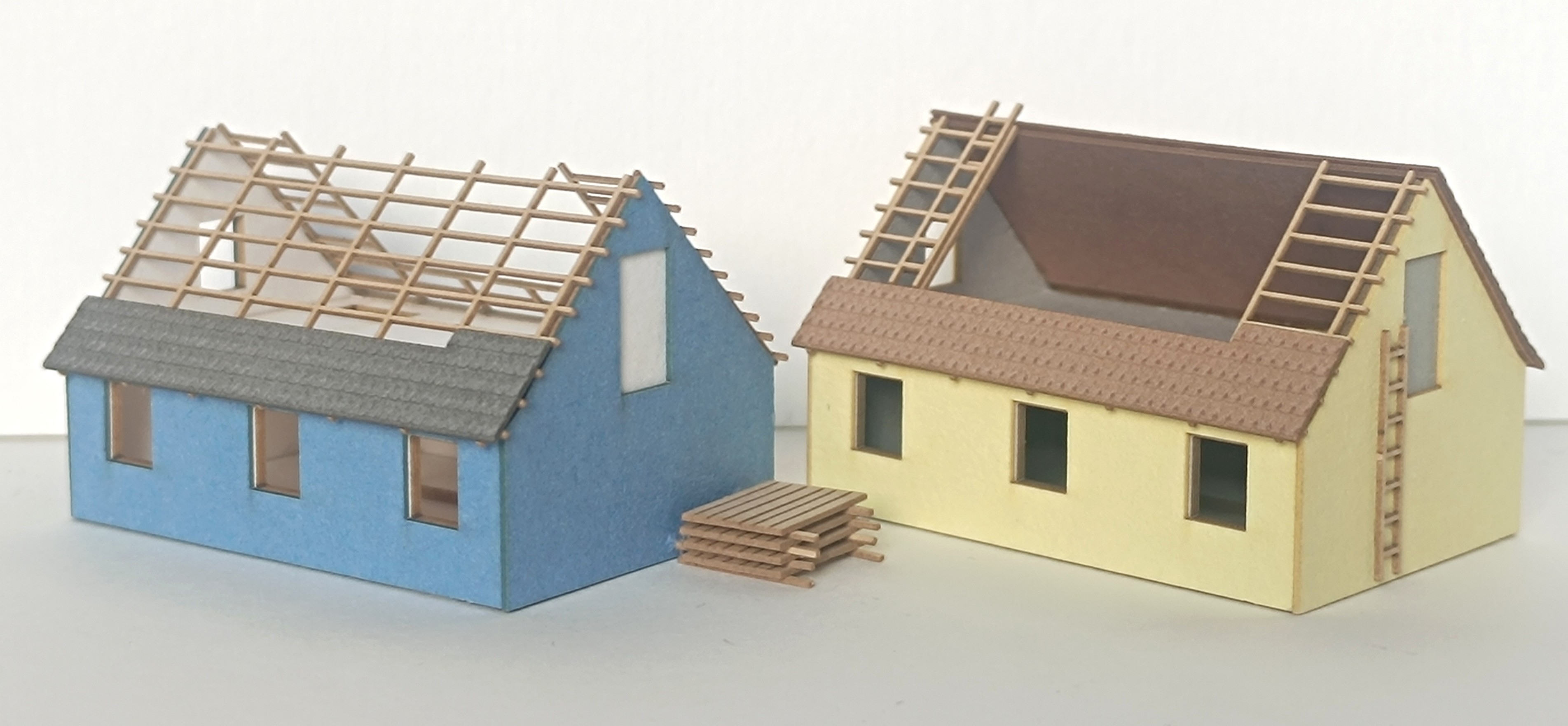 Laffont Z8721 - Einfamilienhäuser im Bau, 2 Stück, mit Bretterstapel