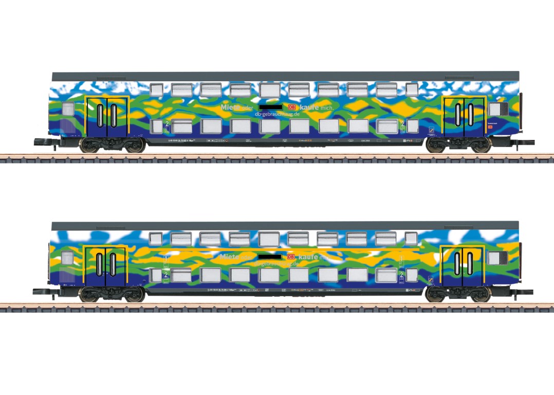 Vorbild: 1 x Doppelstock-Mittelwagen DBpza 753.5 und 1 x Doppelstock-Mittelwagen DABpza 758.5 der DB AG, Geschäftsbereich DB-Gebrauchtzug. Aktueller Zustand der Epoche VI.
