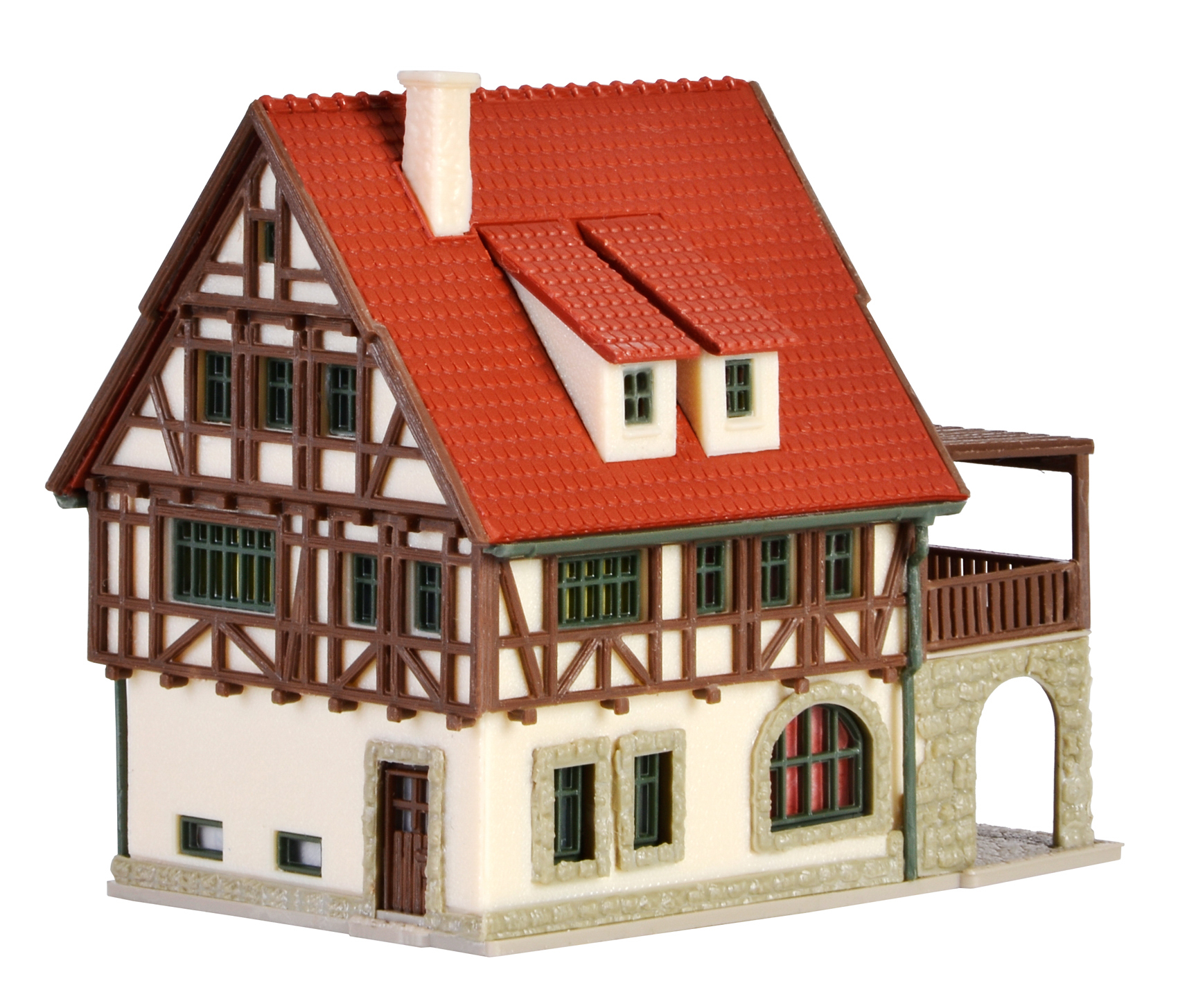 Mit Terrassenanbau. Maße: L 6,5 x B 5,5 x H 5,8 cm.