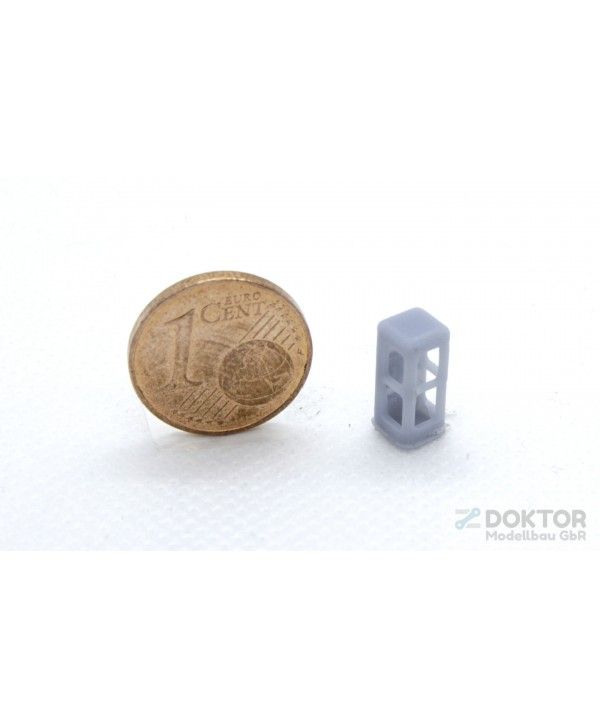 Telefonzelle TelH78 für die Spur Z. Die Telefonzelle wurden aus Resin mit einem 3D-Drucker erstellt und kann winzigste Abbrüche und Ungenauigkeiten aufweisen.