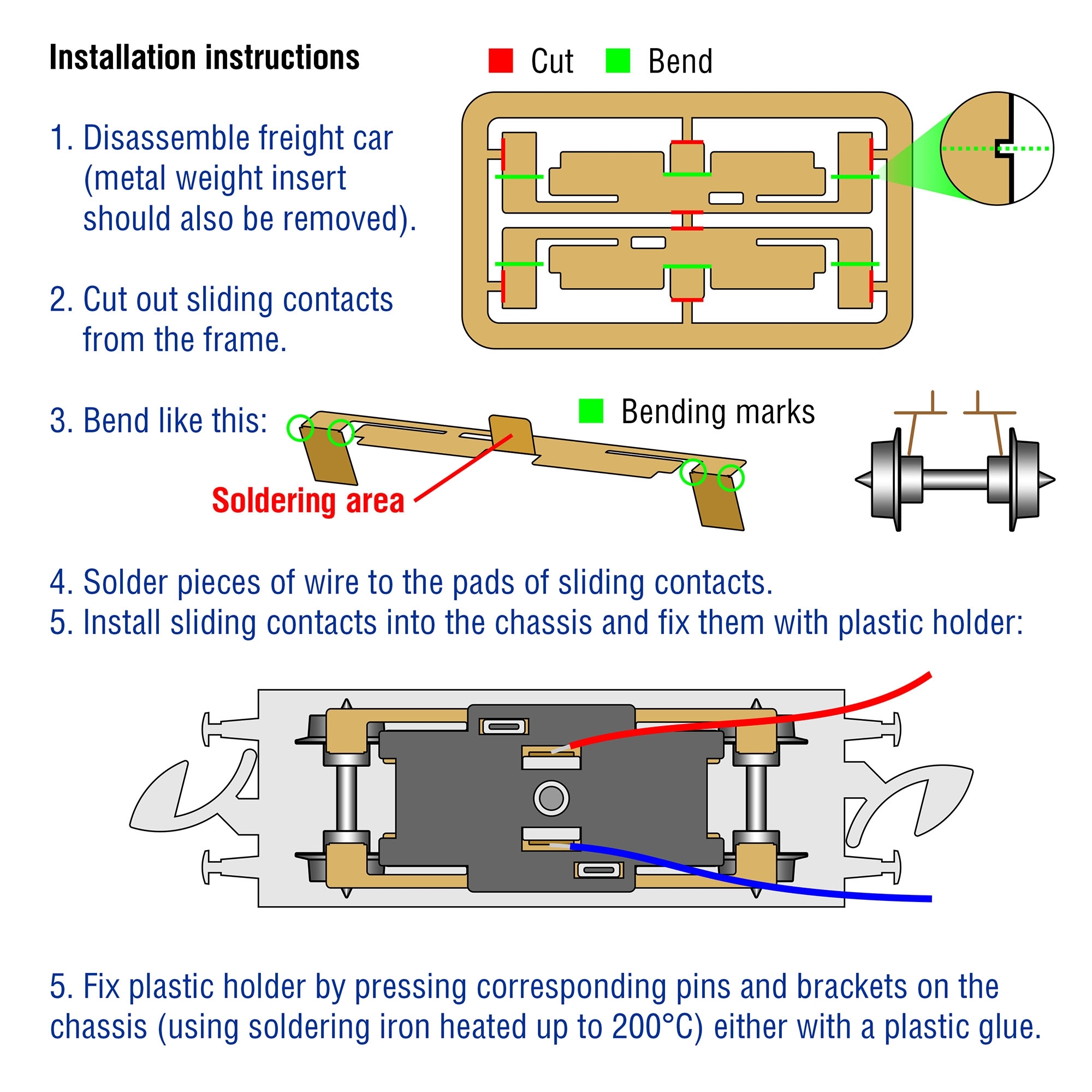 Sliding contacts for Märklin® 2-axle type Pwg, G 10 and other compatible freight cars