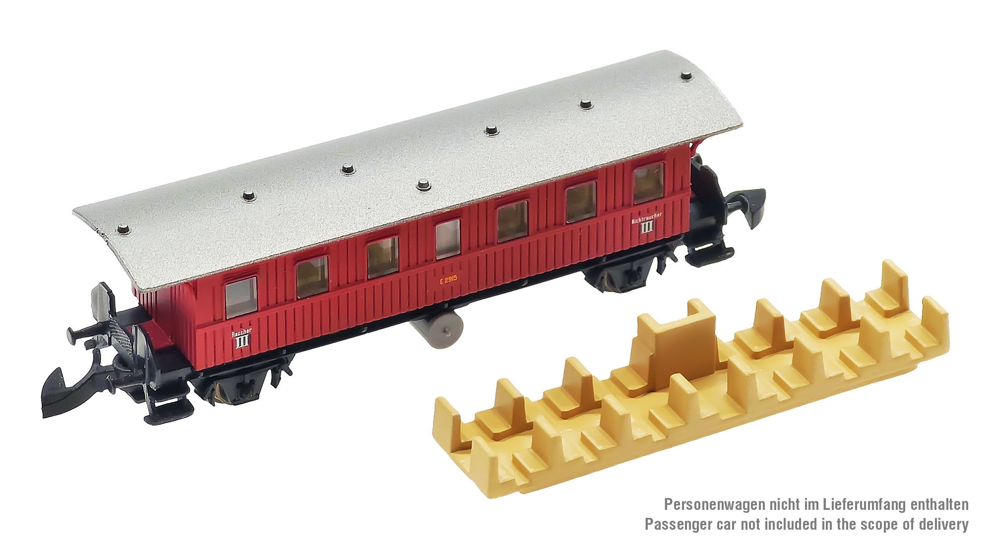1. Separate the chassis and the body of the passenger car: heat up the pins on the bottom side of the coupler box with a soldering iron heated to 200° C and carefully pull the body upwards at the same time.