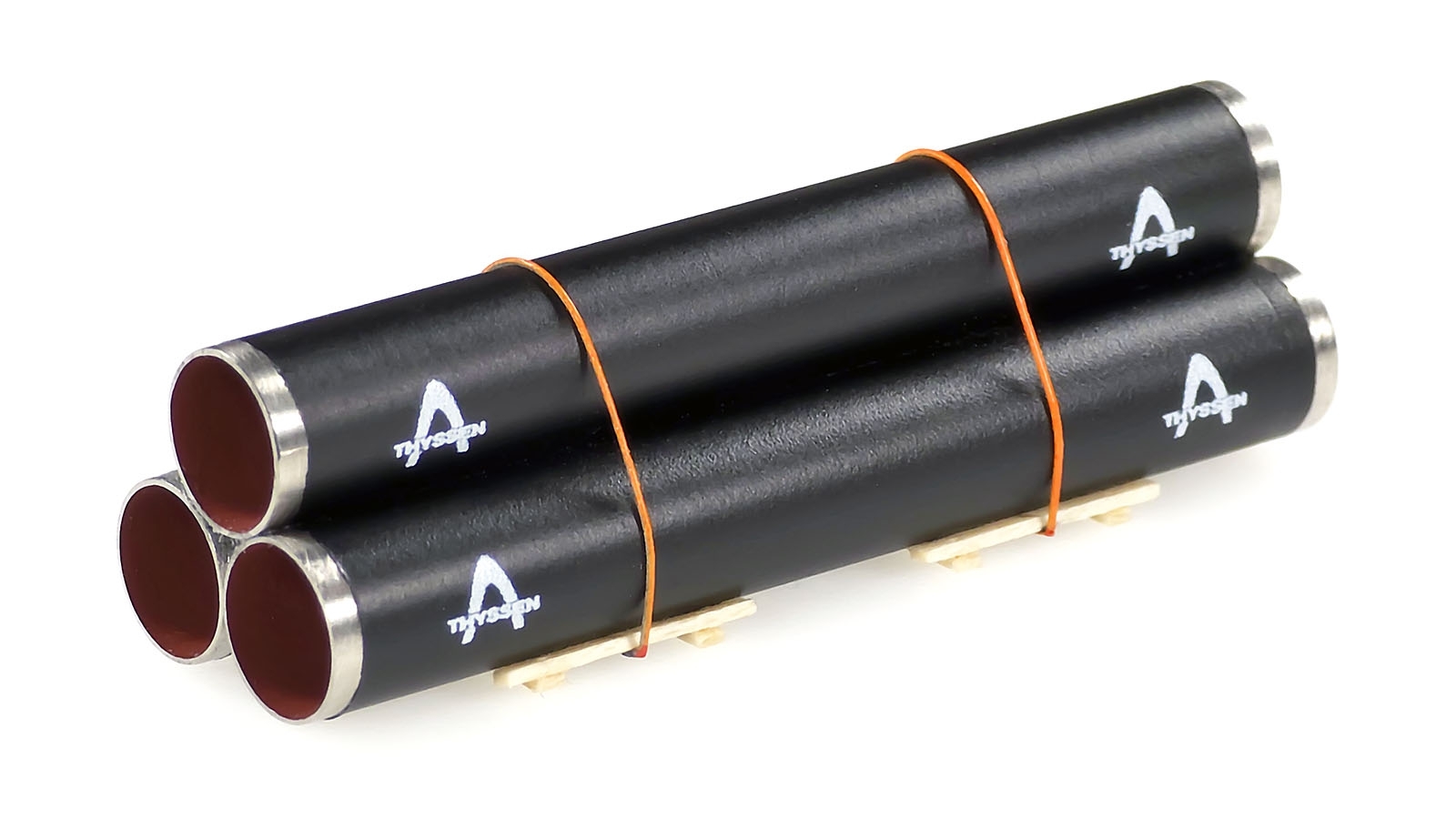 Pipe loads need to be additionally secured on certain types of flatcars in order to avoid sliding. Use supplied transparent double-sided adhesive labels for this when needed.