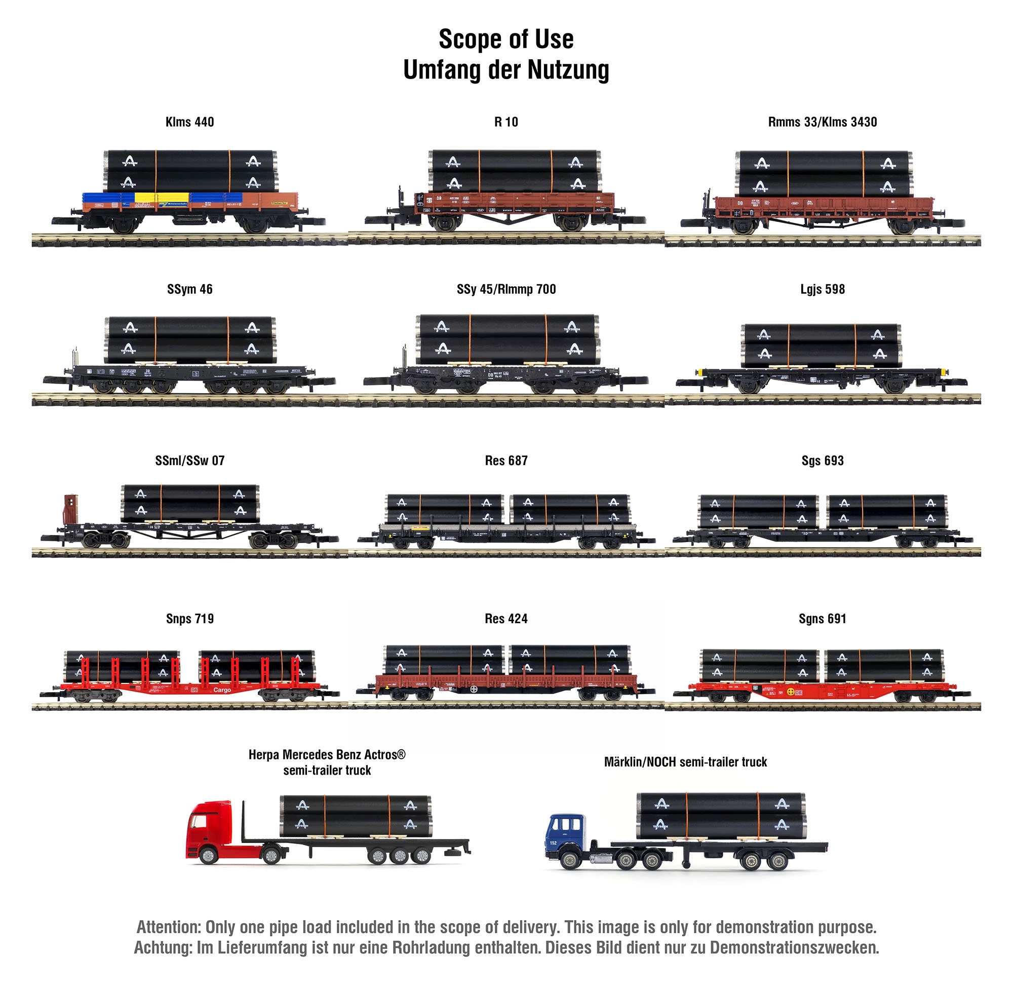 Type Lgis flatcar: Märklin 80812, 81098-11, 81098-13, 81431, 81432, 81861, 81862, 82283, 82285, 82360, 82361, 82362, 82363, 82364, 82365, 82366, 82367, 82368, 82395, 82503, 82506, 82663, 82664, 82665, 98062